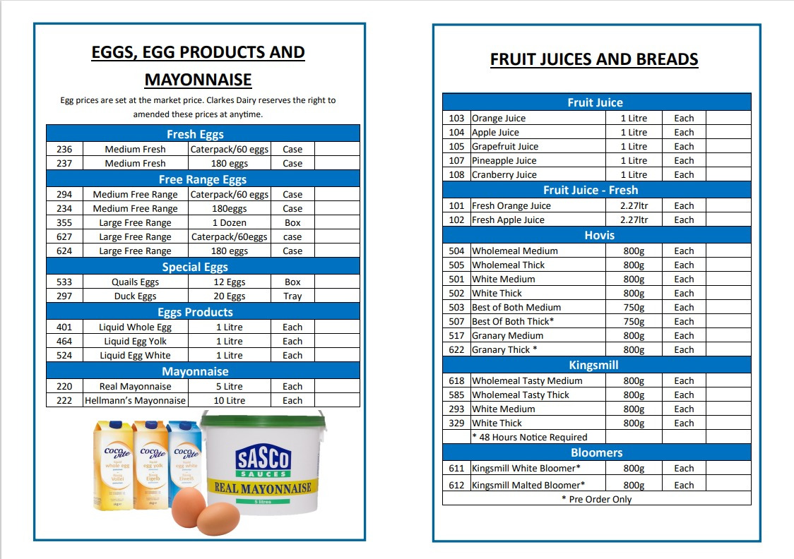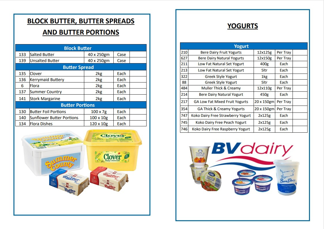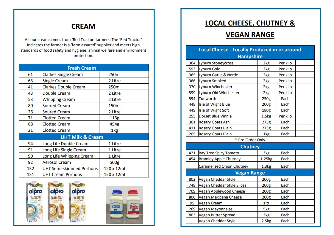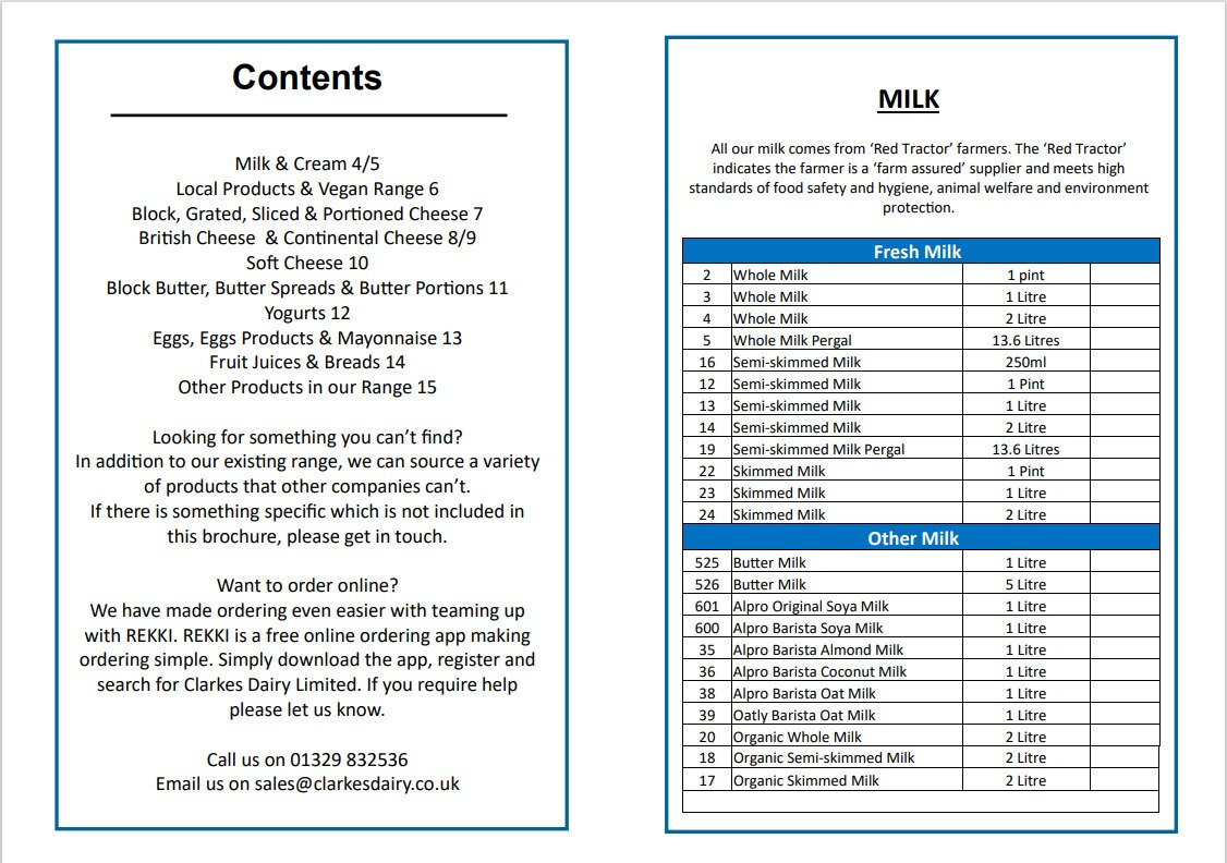This is just a small selection of products that Clarkes Dairy can source. If you can't find something in our product list, doesn't mean we can't supply it. Please contact us on 01329 832536 or sales@clarkesdairy.co.uk
